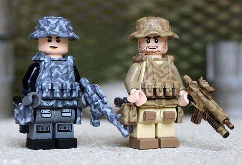 Custom Minifigures don’t get any better than the Brotherhood by Geoshift. The camouflage is excellent on both minifigs and the colours look great. All the little details stand out including the holster, pouches on the legs, and matching camouflage on the weapons.