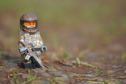 The Crysis 2 Marine Nanosuite by Sean-Michael Griffin is the complete shot. A well painted custom minifig in the perfect setting. There is a suggestion that a Tiny Tactical or Brickforge vest would look better than a decal, however I personally like this minifig as it is. The weapon looks great, so a fantastic job, well done!