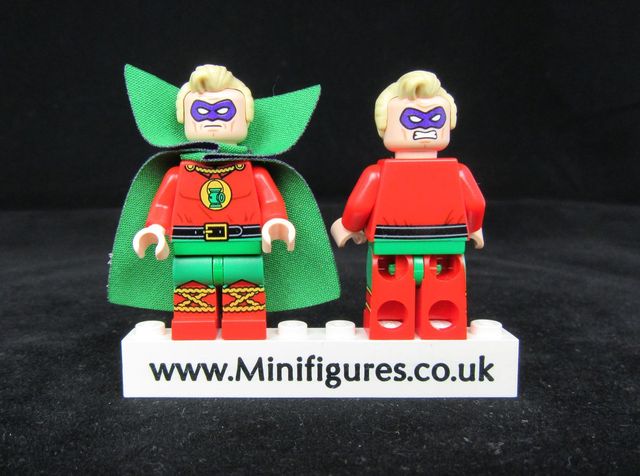 This Alan Scott Custom Minifigure is a high quality pad printed minifigure and the second release by Paris Custom Bricks. He features a double sided head and blonde LEGO hair piece. He also comes with a double sided torso, printing to the front and sides of the legs and purple and green custom cape.